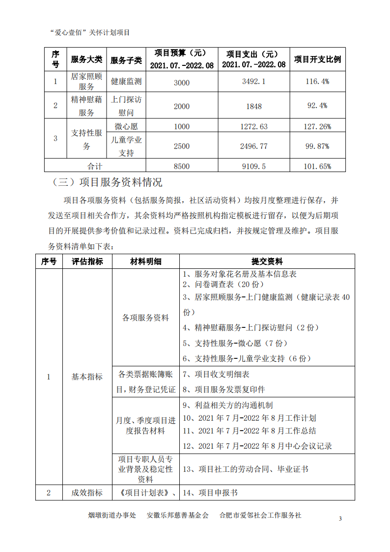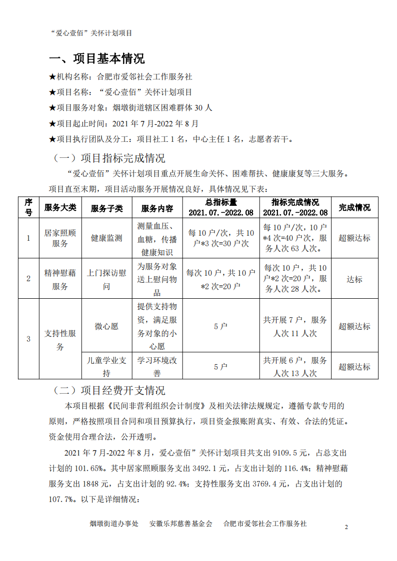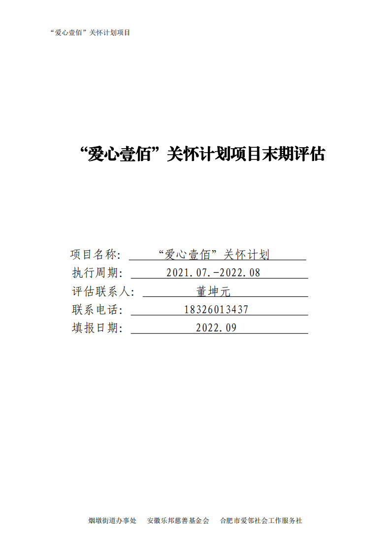 2021年7月-2022年8月“爱心壹佰”关怀计划项目末期评估