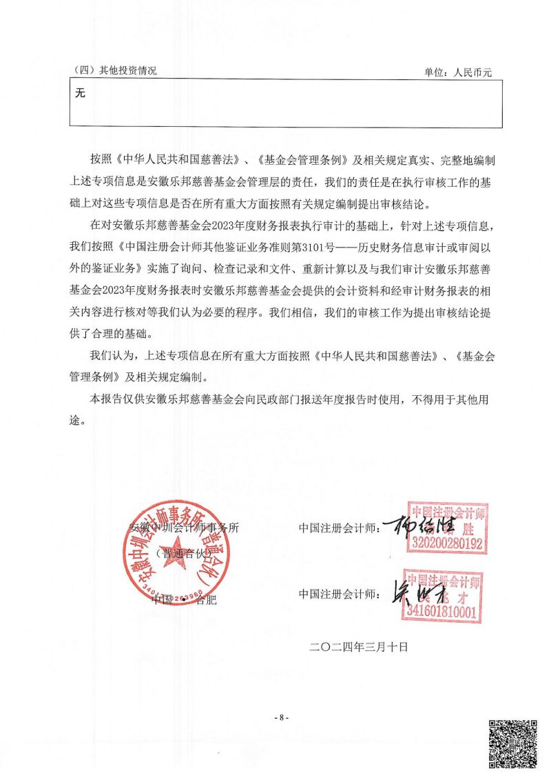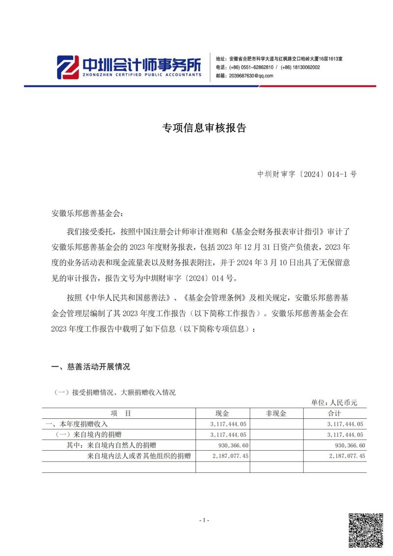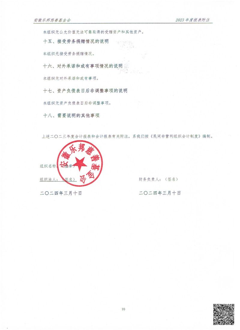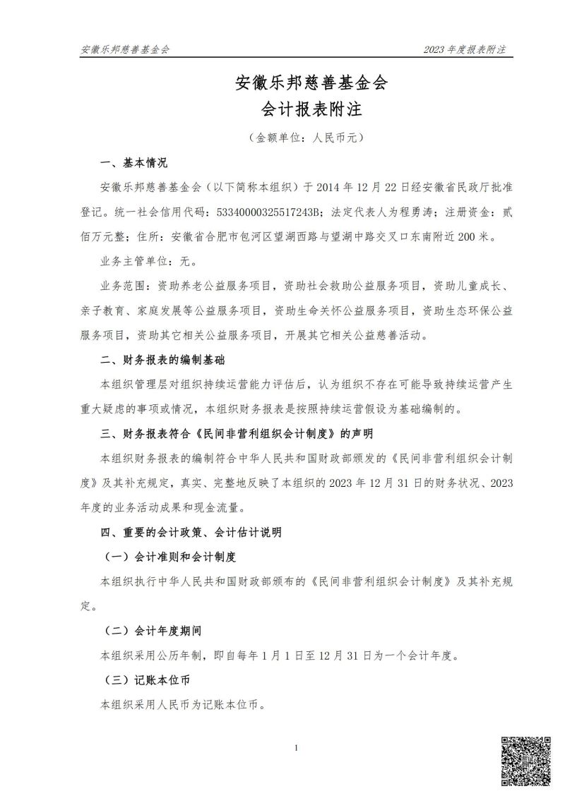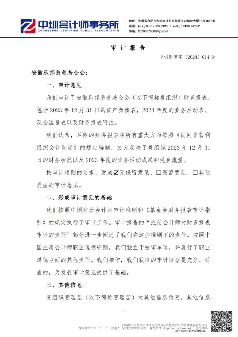 安徽乐邦慈善基金会2023年财务审计报告