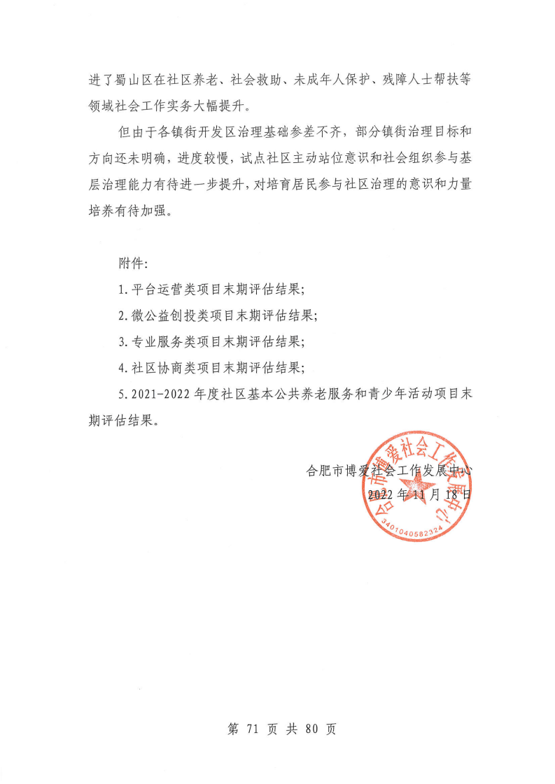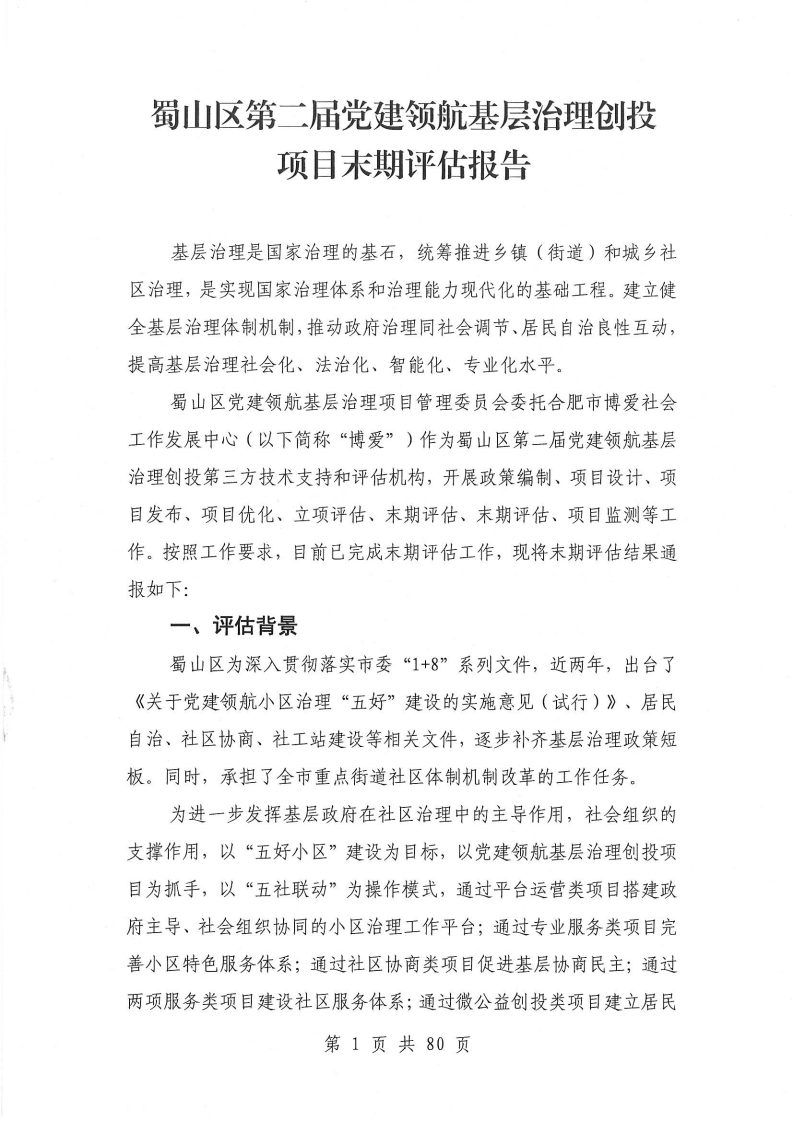 蜀山区第二届党建领航基层治理创投项目末期评估报告