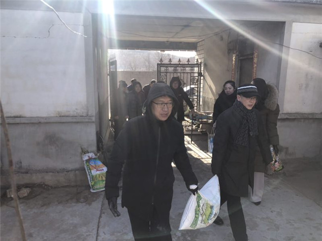 调研组走访慰问了4户困难家庭,了解他们的实际困难,在新春到来前夕,送去了党和政府的温暖。大连老模范厨具有限公司董事长王春梅、北京语言大学附属大连高级中学校长张丽娜等爱心人士为那屯村30户贫困家庭赠送了价值1.6万元的米、面、油、保暖内衣等生活用品;市希望工程办公室为那屯村的小学生赠送了价值2000余元的少儿图书。